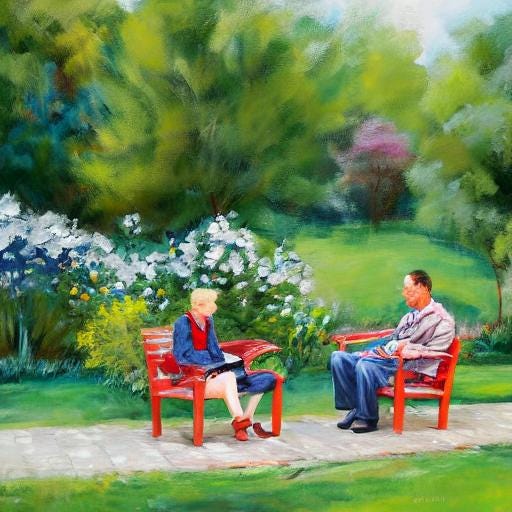 JoAnn sat by Jake’s side and started talking about the beautiful weather. Jake received her attention well, but throughout the encounter, JoAnn could tell that there were more than just the two of them in that conversation. And she was OK with it.